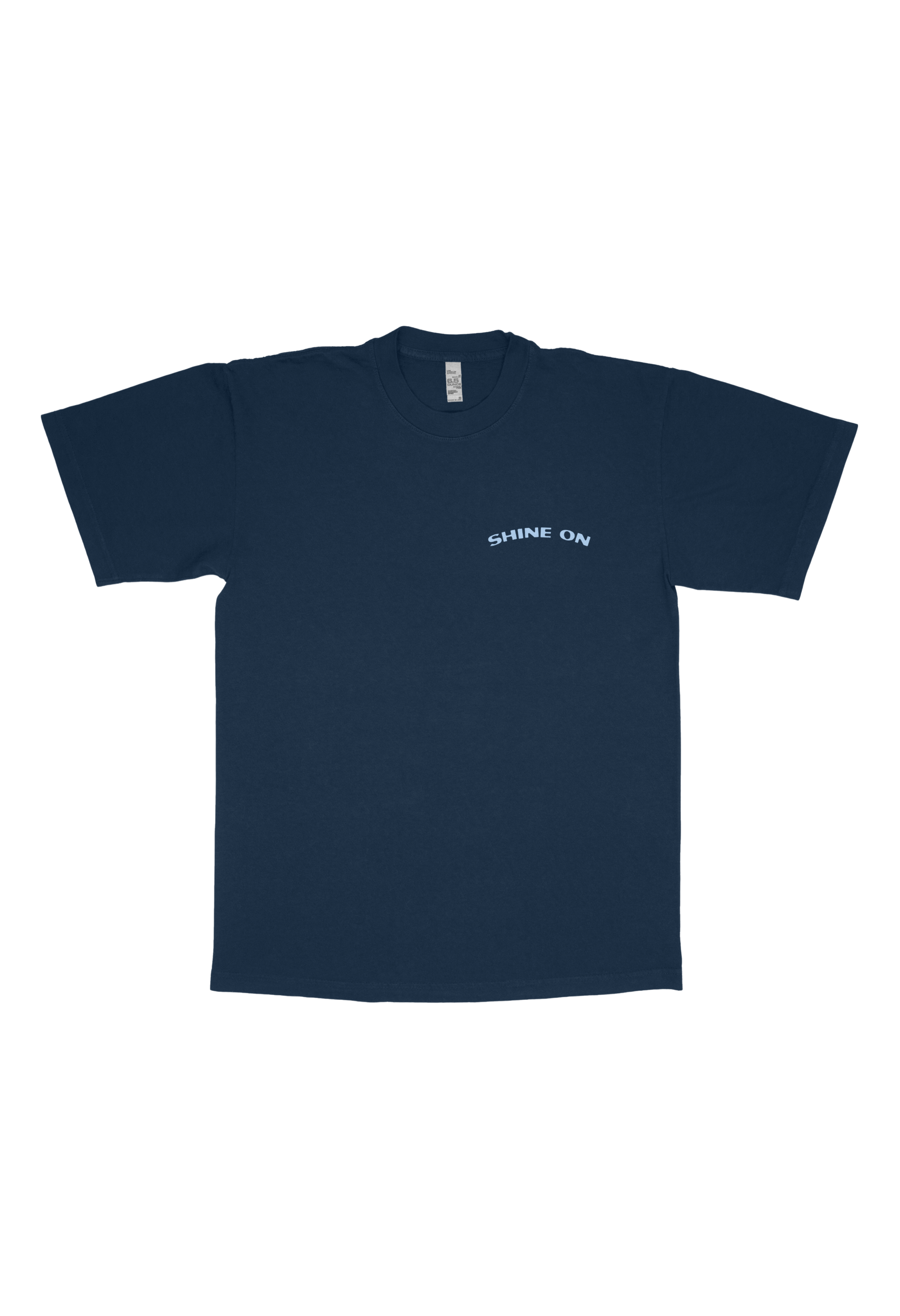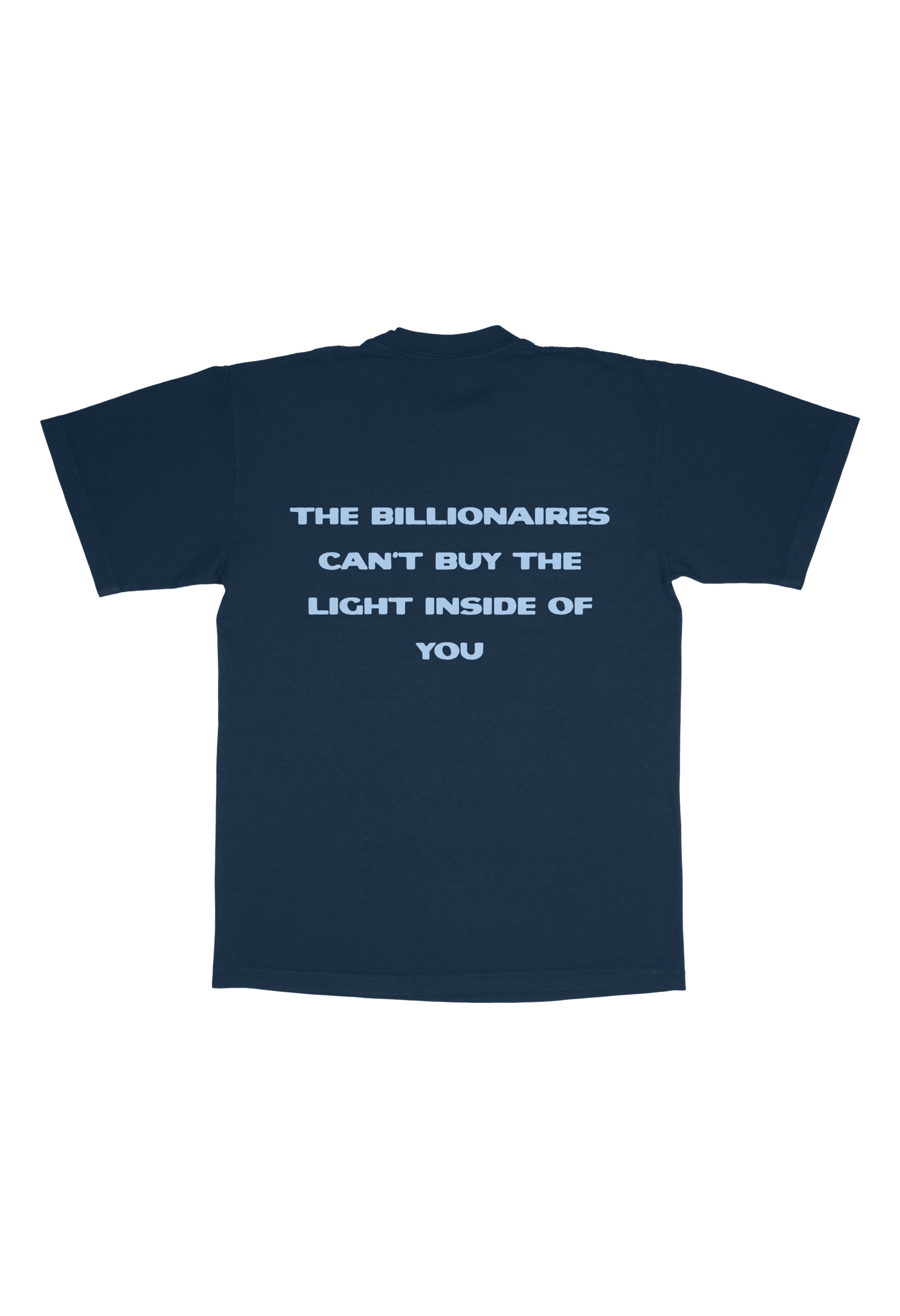Shine on! Front and back design, Featuring light blue text "The billionaires can't buy the light inside of you" on the back and a small "Shine On!" in the upper corner.